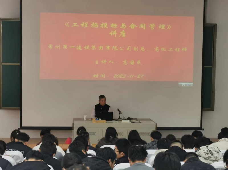为深化产教融合,拓展课堂教学案例,11月27日,MK体育邀请了常州第一建筑集团有限公司副总、高级工程师高国民到公司开展《工程招投标与合同管理》讲座,造价2051-2053班员工参加会议,会议由刘辉老师主持,王茜、储虹等专任老师也积极参会。
