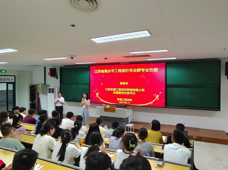 9月11日,MK体育面向工程造价省级高水平专业群2024级工程造价及建设工程管理专业全体新生,开展了“企业专家进课堂——入学教育专业引领”活动。本次活动邀请了公司客座教授、江苏安厦工程项目管理有限公司总裁兼党支部书记翟春安,作主题为“青春的靓丽担当”的新生专业引领讲座,十余位青年教师及新生辅导员参加此次活动。