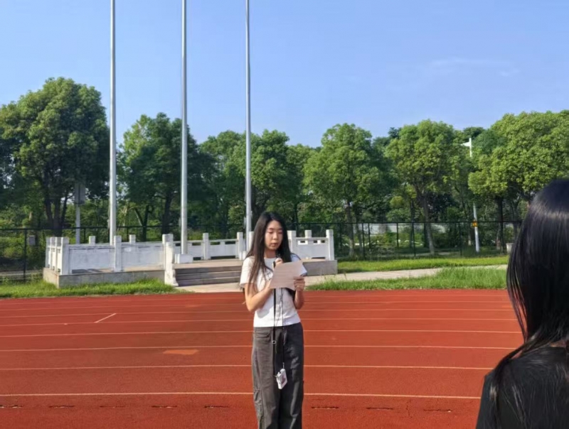 晨光初现时,同学们整齐列队于国旗台下。当国歌奏响,五星红旗冉冉升起,全体师生肃穆行礼,目光中饱含对诚信精神的敬畏与践行的决心。随后,员工代表薛木子以“诚信为基,筑梦未来”为主题发表讲话,她结合校园生活实例,从课堂诚信、学术诚信、生活诚信三个维度展开:“作业不抄袭是诚信,借物及时还是诚信,考试不作弊更是诚信——诚信不是空洞的口号,而是藏在归还图书馆书籍时的准时、答应同学帮助时的坚守里。”